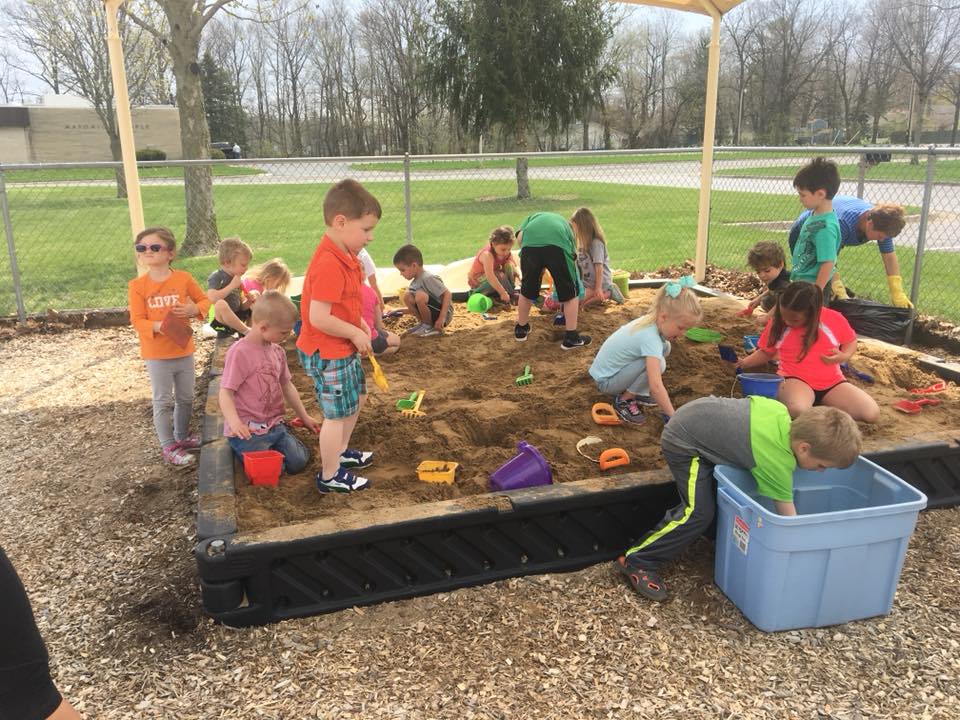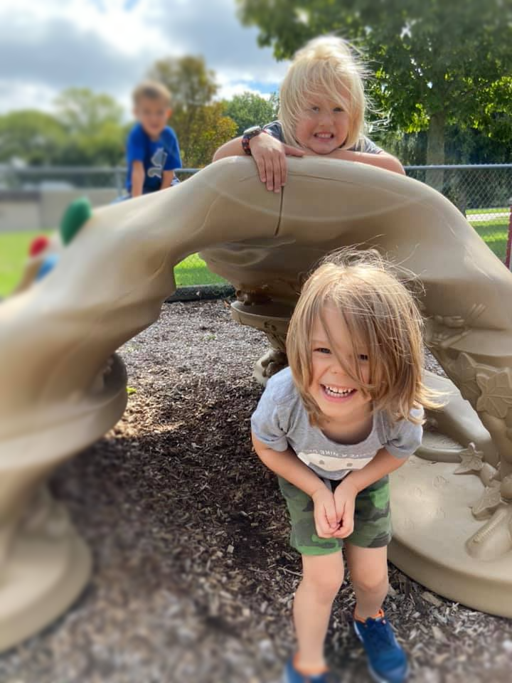 Outdoor play is also included in our routine. We have a fenced in outdoor playground that includes a playset with slides, swings, climbers and a sandbox.