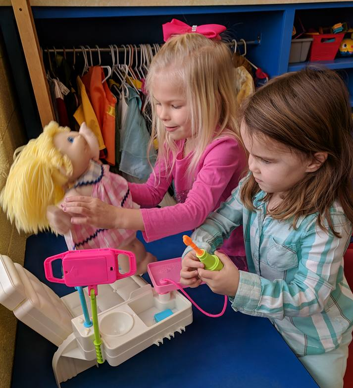 Our housekeeping room is full of excitement! We get to have our circle time, group sharing, stories, songs, and finger-play are done in here and this is our main room. This large room contains stations where students rotate through our listening center, reading area, small muscle activities and manipulatives, and our dramatic play area with dress-up clothes, dolls, a table and play kitchen area.