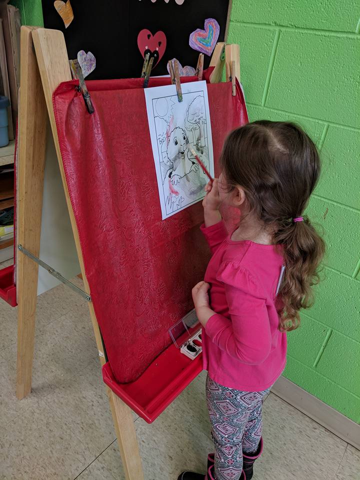 Our art and snack room contains lots of sensory activities! Your child will enjoy making an art project everyday and have multiple different stations with fun engaging activities. A few other activities include a paint easel, a sand/water table, paint, and games.
